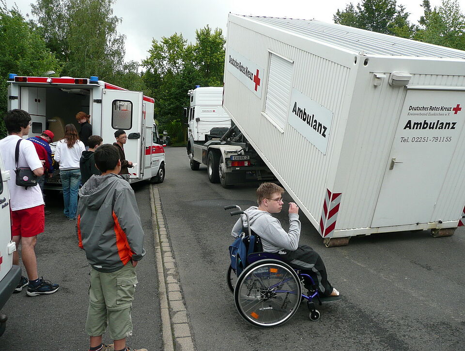 Am vergangenen Freitag hatte das Rote Kreuz in Bad Münstereifel einiges zu bieten. Am Haus des Jugendrotkreuzes an der "Nöthener Tanne", wo Jugendliche aus 17 Nationen zu Gast waren, zeigten sie eindrucksvoll, was das Rote Kreuz im Kreis Euskirchen "drauf" hat.