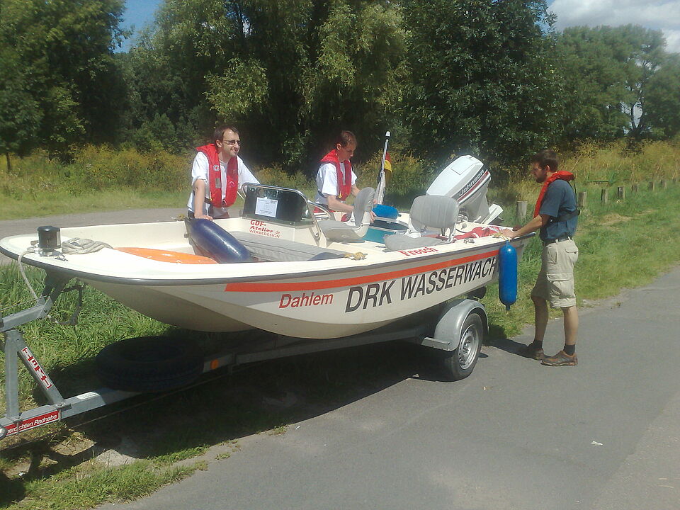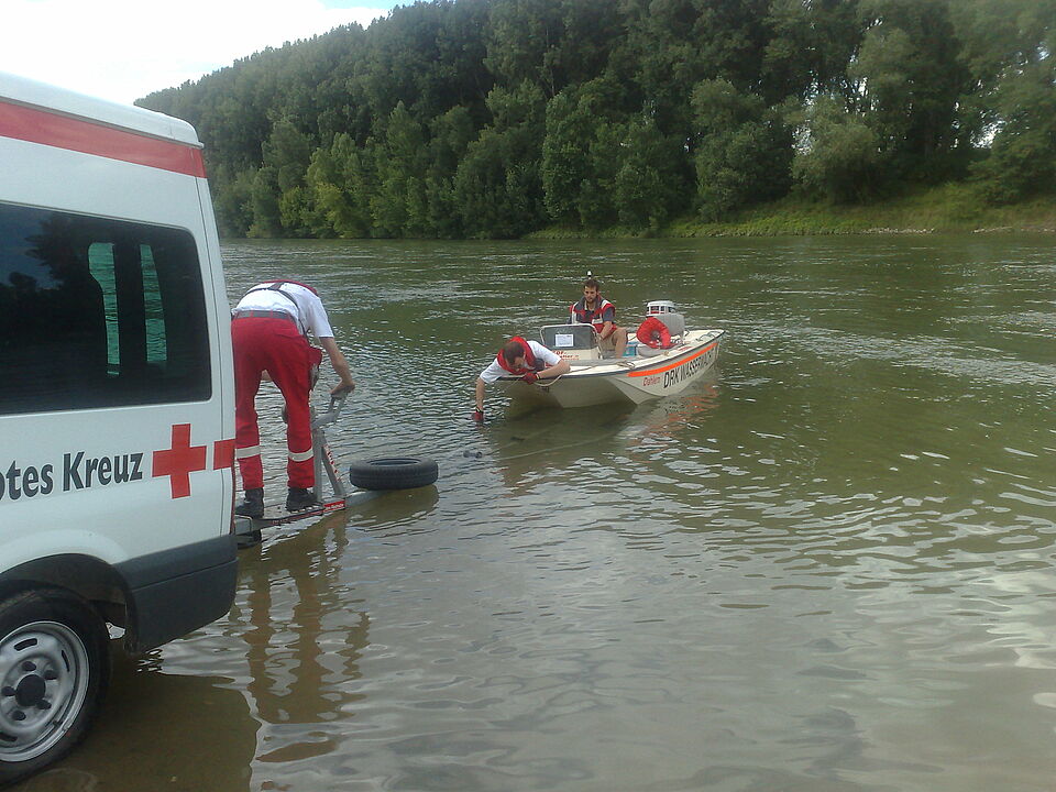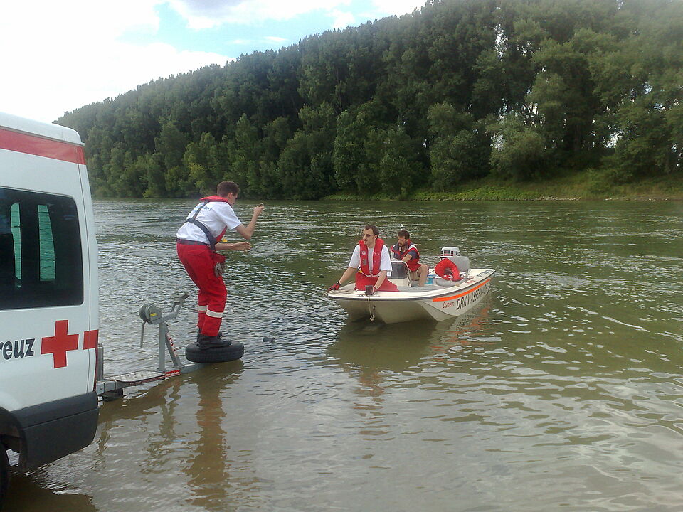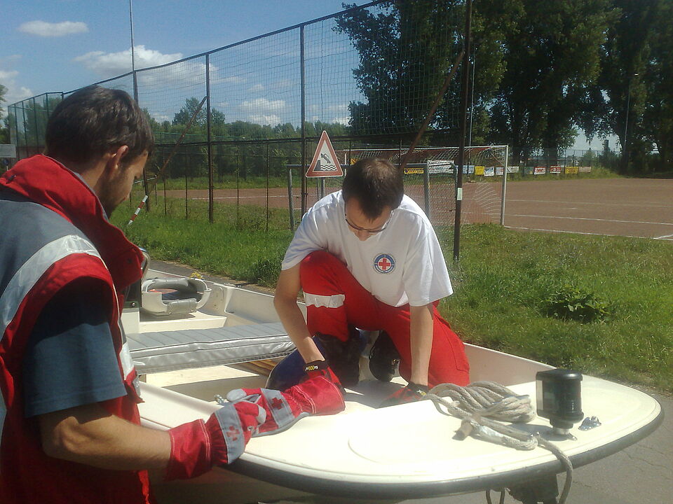 Vier Stunden lang übten die Rotkreuzler verschiedene Manöver, zum Beispiel "Mann über Bord", "Wenden auf engstem Raum", "Ankern und Anlegen" , sowie das Vorbereiten und "Slippen", also das Zu-Wasser-Lassen des Bootes.