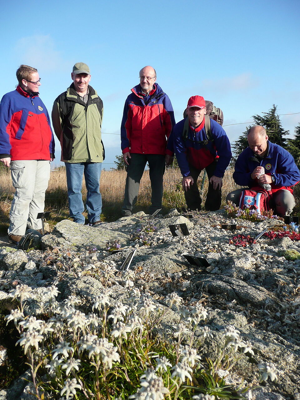 Bild DRK ZR | Ein besonderes Erlebnis war die Führung durch den Brockengarten. Begünstigt durch die klimatischen Bedingungen ist hier eine außergewöhnliche Flora zu besichtigen. Hier stehen die Bergwachtler vor ihrem Markenzeichen dem Edelweiß.