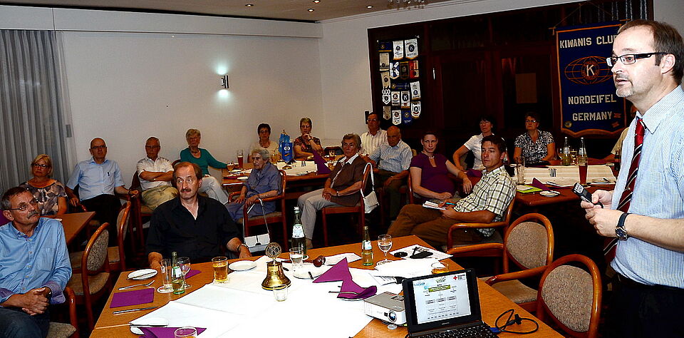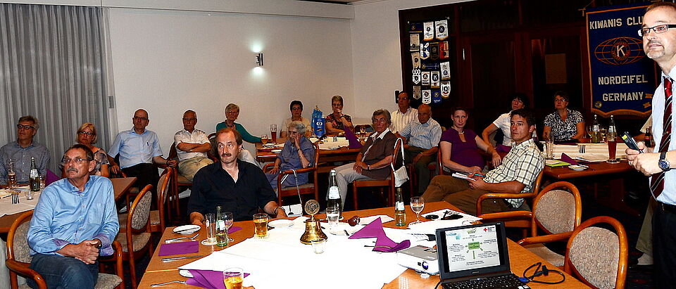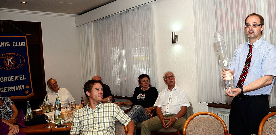 Im Kreis Euskirchen sind mittlerweile 16 der rund 130 Kindertageseinrichtungen als „Haus der kleinen Forscher“ zertifiziert, zwölf davon sind Rotkreuz-Einrichtungen. „Um allen Anfragen gerecht zu werden“, berichtete Rolf Klöcker, „haben wir gemeinsam mit dem Regionalen Bildungsbüro (Kreis Euskirchen) das »lokale Netzwerk Haus der kleinen Forscher« gegründet.“ Dafür habe man Sponsoren zur Anschub-Finanzierung gesucht. „Die Spende von Kiwanis-Club und VR-Bank Nordeifel kommt also gerade zur rechten Zeit“, so Klöcker, der das Projekt dem Kiwanis-Präsidium vorgestellt und um Unterstützung gebeten hatte. Ergänzend und effizient möchte der Kiwanis-Club auch neben seiner finanziellen Unterstützung fachspezifische Hilfe leisten. So ist durchaus vorstellbar, dass der Ingenieur, der Arzt, der Jurist oder auch der Lehrer sein Wissen und seine Fähigkeiten aktiv in das Projekt einbringt und so die finanzielle Hilfe durch gezielte personelle Unterstützung begleitet.