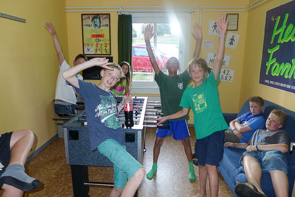 Vogelsang Transit 59 - Im strömenden und anhaltenden Starkregen waren die Kinder total durchnässt und kalt geworden. So hatte das Leitungsteam der Gruppe sich spontan entschieden in Vogelsang einen außerplanmäßigen Stop einzulegen.