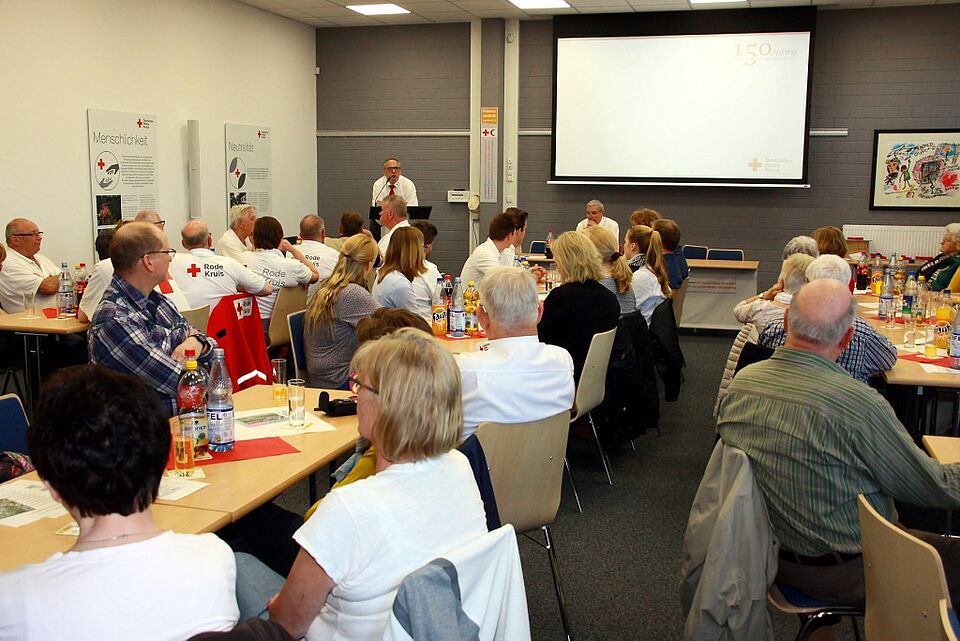 Rund 90 Mitglieder hatten sich zur Versammlung eingefunden, bei der auch die verdienten Blutspender geehrt wurden. Vorsitzender Rolf Zimmermann begrüßte die Gäste im neuen Domizil, das das bei dieser Gelegenheit zum ersten Mal benutzt wurde. Aus den Niederlanden waren die Vertreter der Historischen Sammlung des „Rode Kruis“ dazugekommen, die bereits für den zwei Tage später stattfindenden Familientag angereist waren.