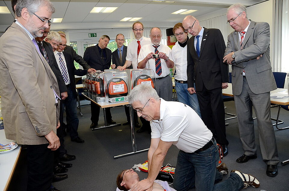 Die Schulung der Mitarbeiter in den Geschäftsstellen und Rathäusern zum Umgang mit den Geräten erfolgt durch das Rote Kreuz. Aber auch Laien können das Gerät ohne Scheu einsetzen – Fehler sind unmöglich, das Gerät misst selbst die Herzfrequenz, bevor es einen Stromimpuls zulässt.