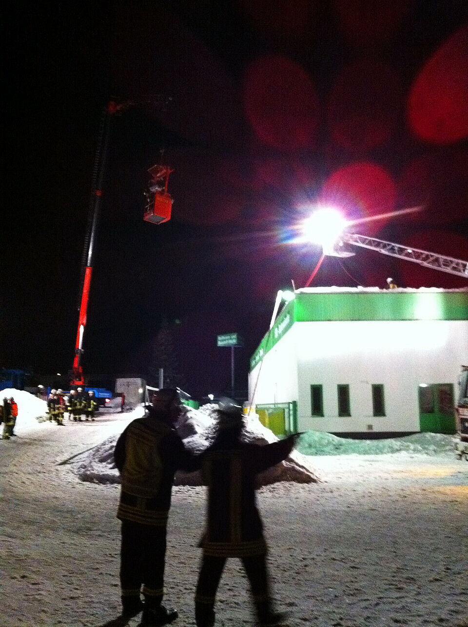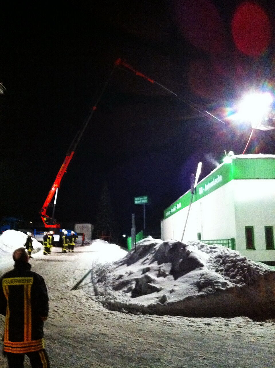 Am gestrigen Abend kamen jetzt die Schleidener Feuerwehren an einem Handelsgebäude in Oberhausen zum Einsatz. Das Dach musste von der Schnee- und Eislast befreit werden, um weitere Gefahren abzuwehren.