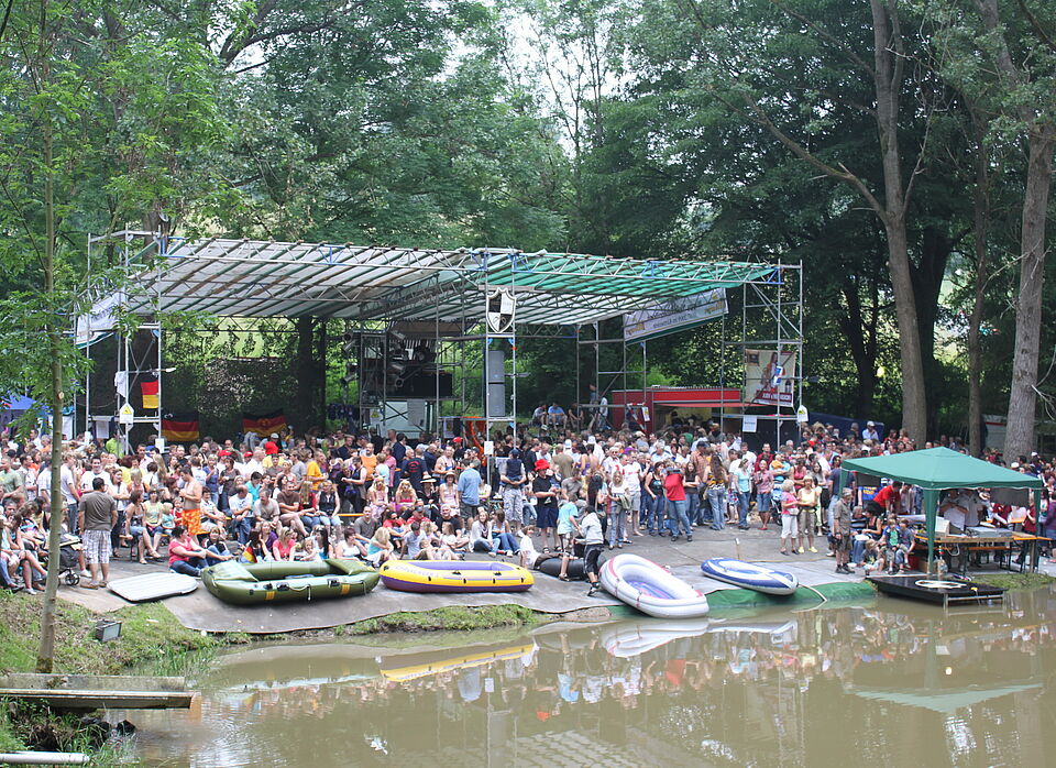 Mehr als 80 Teams aus vielen Teilen Deutschlands sind in diesem Jahr angetreten. Damit auch für die Sicherheit der Besucher und Schlauchbootfahrer gesorgt war, stand das Rote Kreuz aus Schleiden mit ihrem Rettungswagen vor Ort bereit.
