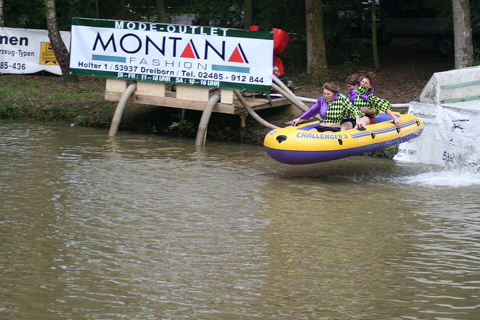 Veranstaltungsort war der Weiher zwischen Dreiborn und Berescheid. Mit handelsüblichen Schlauchbooten, die vom Junggesellenverein gestellt oder selbst mitgebracht wurden, rasten die Dreier-Teams, deren Teilnehmer mindestens das Seepferdchen abgelegt haben müssen, mit rund 40 Kilometer in der Stunde über die etwa 100 Meter lange "Wildwasserbahn" über eine Rampe hinunter in den "erfrischenden" Weiher.