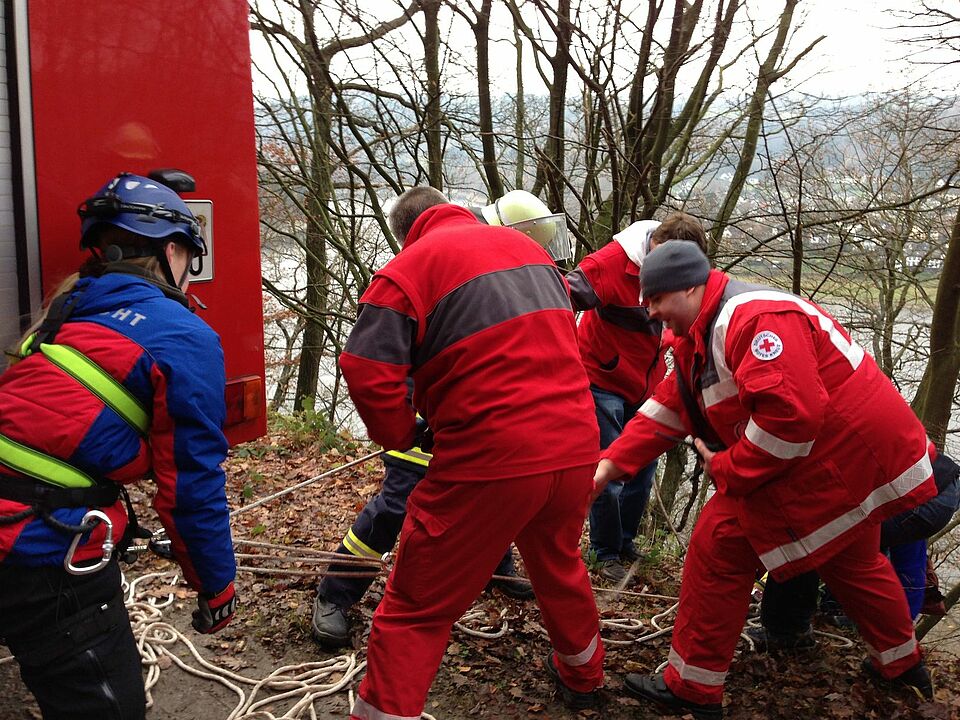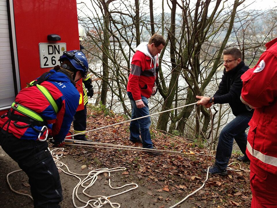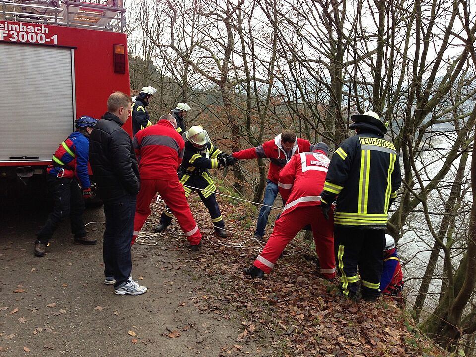 Am frühen Nachmittag wurd die Rotkreuz-Bergwacht für einen Einsatz am Kermeterufer alarmiert. Zwei Wanderer waren vom Weg abgekommen und hatten sich im steilen Ufergelände verirrt. Eine Wanderin rutschte dabei den Steilhang hinunter bis in die Uferböschung.