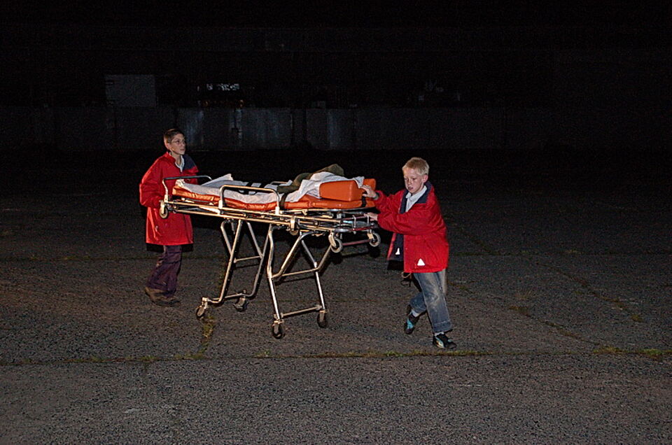 Doch plötzlich wurde der "Alltag" jäh unterbrochen. Die Rettungsleitstelle meldete einen angeblichen Unfall auf dem Adlerhof. Sofort rückten die Jugendlichen mit ihren Betreuern aus, um zu helfen. Nicht zum letzten Mal an diesem Tag, wie sich später herausstellen sollte.
