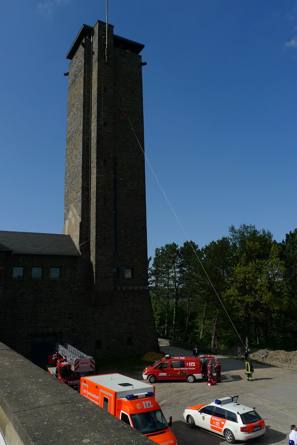 Schleiden / Vogelsang IP - Da haben alle wirklich noch einmal Glück gehabt. Ein lange erwartetes Einsatzszenario wurde auf dem Turm der Burg Vogelsang jetzt Realität.