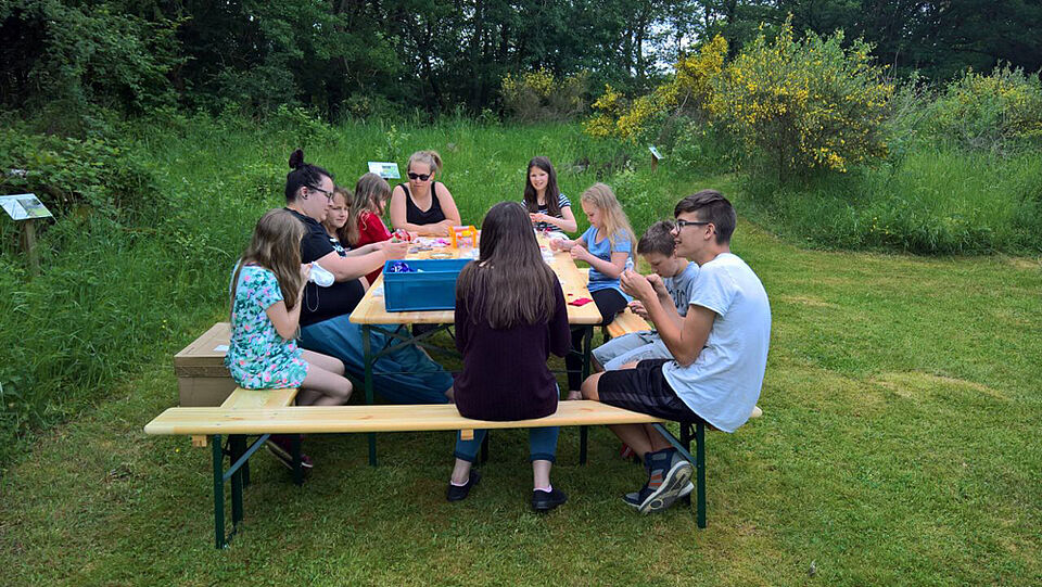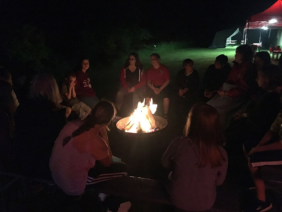 Zum Abendessen gab es leckeres Ratatouille mit Reis. Im Anschluss las Daniel allen, die Lust hatten, am Lagerfeuer schöne Geschichten vor. Manche spielten Kubb und andere gingen spazieren.