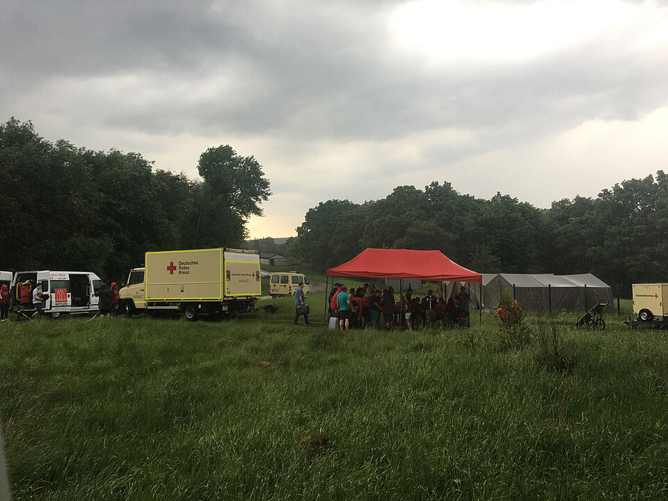 Nachdem bei den Vorbereitungen am Donnerstag und beim Aufbau am Freitag noch strahlender Sonnenschein die Gemüter erhellte, fiel die Ankunft der Teilnehmer um 18 Uhr beinahe ins Wasser.