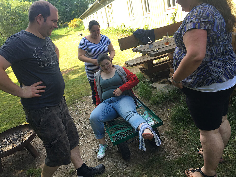 Nachdem die zweite Runde vorbei war, konnten alle bis zum Essen ein wenig ihre Seele baumeln lassen und chillen. Oder auf unserem Hüpfburg-Rettungswagen coole Stunts zeigen.
