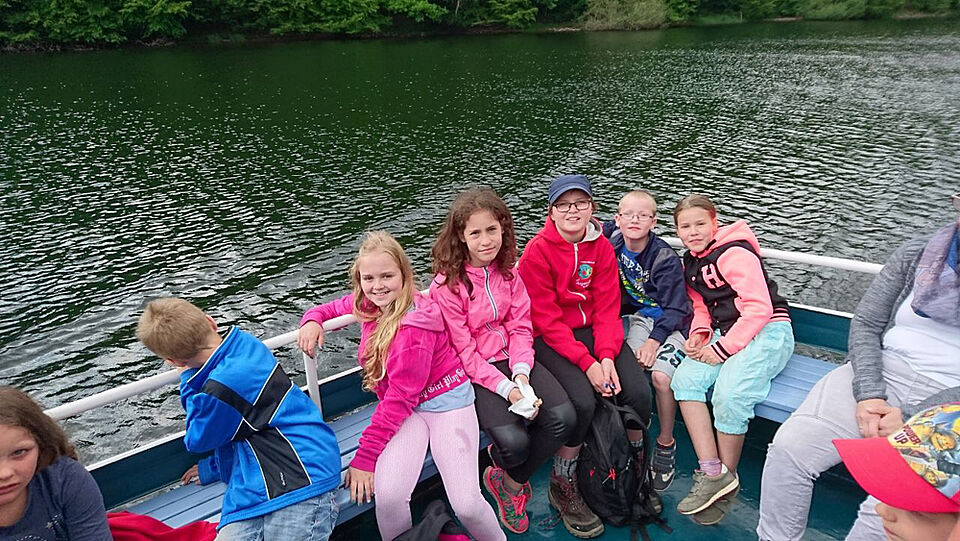 Hurra - den Rest der Strecke musste niemand laufen. Ein Hoch auf die Ruhrseeschiffe – wir konnten mit einem richtigen Schiff an unser Ziel fahren.
