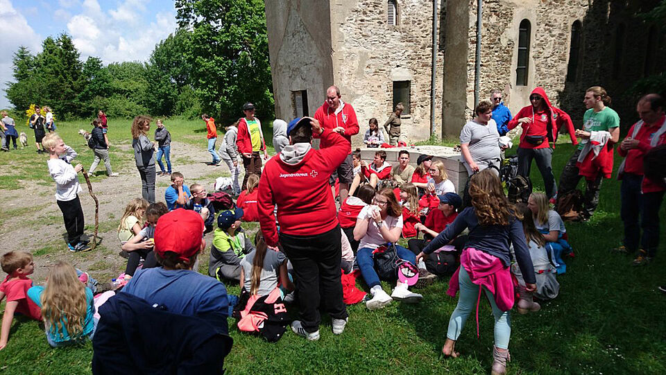 Während einer kleinen Picknickpause in Wollseifen trafen die Jugendrotkreuzler auf einen gestürzten Radfahrer. Dieser wurde von anwesenden Ersthelfern sehr gut versorgt, der Rettungsdienst war bereits auf der Anfahrt. Der Patient wurde ins Krankenhaus gefahren, sein Fahrrad war aber noch vor Ort. Und wie sich das für Rotkreuzler gehört helfen wir bekanntlich jedem – so auch dem armen allein gelassenen Fahrrad.