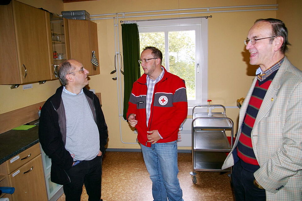 Besuch bekamen die Kreis Euskirchener Rotkreuzler von Dr. Volker Mosemann vom Rotkreuz-Generalsekretariat. Er ist Leiter des Projekts „Die neuen Großväter in Aktion“. Gefördert wird es vom Bundesministerium für Familien, Senioren, Frauen und Jugend. Im Rahmen dieses Projekts sind auch „Die neuen Opas“ des Kreisverbandes Euskirchen angesiedelt. „Wir haben beim Roten Kreuz gute Voraussetzungen für die Großväter-Arbeit. Wir sind in vielen Branchen aktiv, zum Beispiel in der Technik. Da können wir viel einbauen“, sagte Dr. Mosemann. Allerdings sei das Bestreben des Roten Kreuzes dabei nicht, Bildungsveranstaltungen anzubieten. „Es geht um die Gestaltung der Freizeit“, so Mosemann. „Unser Ziel ist es, von den Medienveranstaltungen wie Internet und Fernsehen wegzukommen“, beschrieb Froebus den Hintergrund. „Wir wollen hin zu den traditionellen Dingen. Die Großväter haben das früher erlebt und können das daher am besten vermitteln“, führte er aus. „Wir wollen Großväter und Enkel noch näher zusammenbringen, und das außerhalb des Hauses“, ergänzte Dr. Mosemann. Auch der Kontakt und Austausch zwischen den Großvätern sei bei den Aktionen wichtig. Denn: „Es geht um die Stärkung des männlichen Geschlechts im Rahmen der Gleichstellung“, brachte es der Projektleiter auf den Punkt.