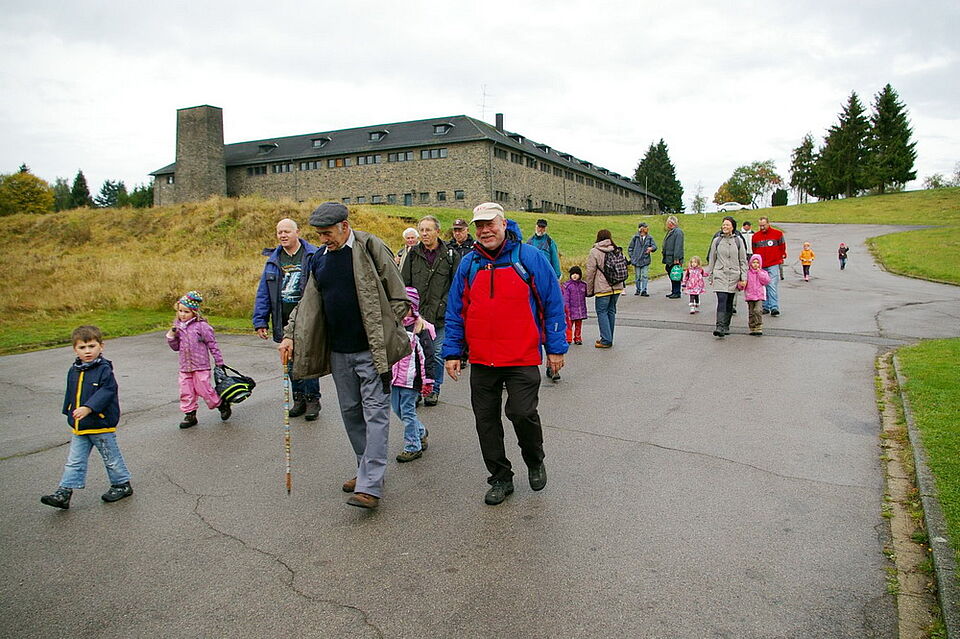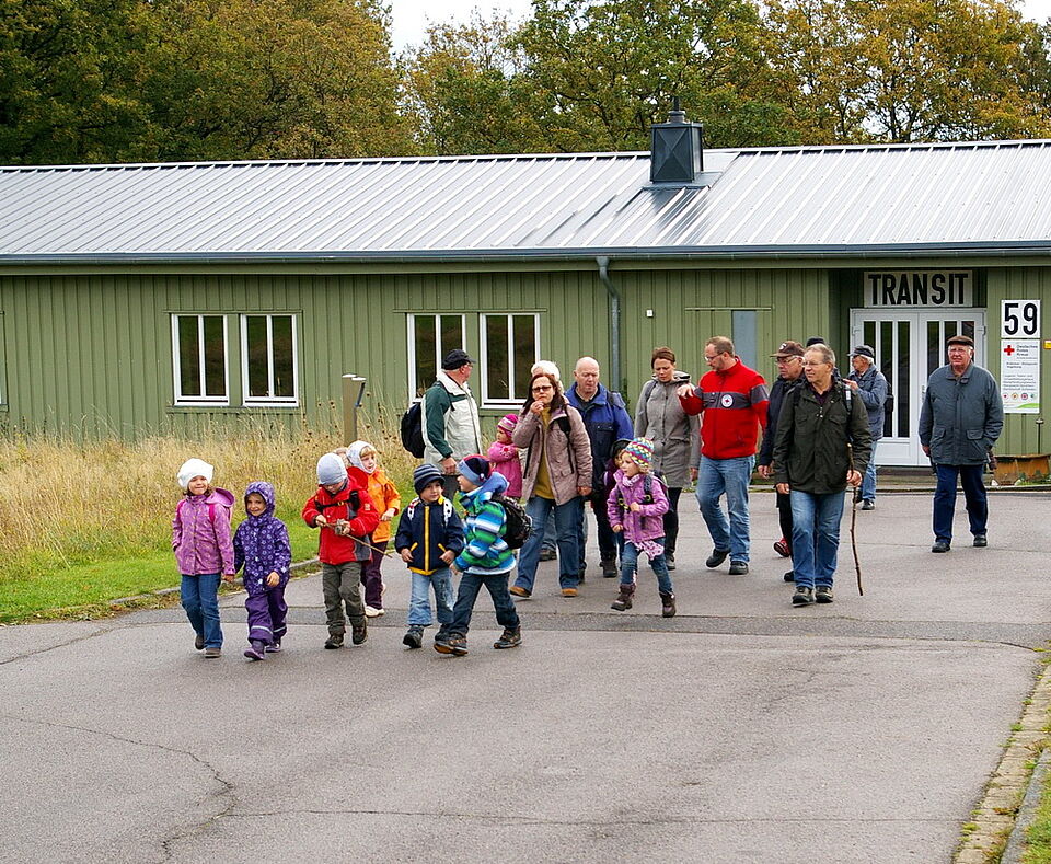 Schleiden – „Es ist eine neue Generation von Opas. Sie sind aktiver und beteiligen sich gerne“, findet Tina Mertens, Leiterin der Rotkreuz-Kita Herhahn. „Ich sage mal salopp, wir müssen weg von dem Bild, dass der Opa zu Hause sitzt und Pfeife raucht“, sagt Bodo Froebus, Leiter des Rotkreuz-Bereichs „Soziales“. Und: „Das Großvater-Bild hat sich gewandelt. Viele Mütter sind berufstätig. Da müssen sie auch mal Kinder wickeln und versorgen, zum Beispiel Essen machen. Sie werden in die Familienorganisation viel mehr eingebunden und müssen Aufgaben mit übernehmen.“ Hinzu komme, dass Zeit auch für Großväter knapper geworden ist. So sind sie also, „Die neuen Opas“. Dies ist der Name des Projekts, den der Euskirchener Kreisverband des Roten Kreuzes dieses Jahr gestartet hat. Im Rahmen dieses Projekts haben sich nun die Kinder der Kita Herhahn auf den Weg in Richtung Vogelsang gemacht. Im Schlepptau hatten sie dabei ihre Opas.