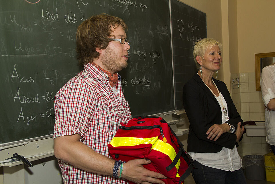 Die Jugendrotkreuz-Kreisleiterin Laura Zimmermann und der Kreisreferent Simon Jägersküpper verteilten nicht nur das Material, sondern fanden auch viele lobenden Worte für das ehrenamtliche Engagement der Schüler. Besonders erfreut waren sie über die Größe der Gruppe sowie die Bereitschaft, sich auch am Wochenende fortzubilden.