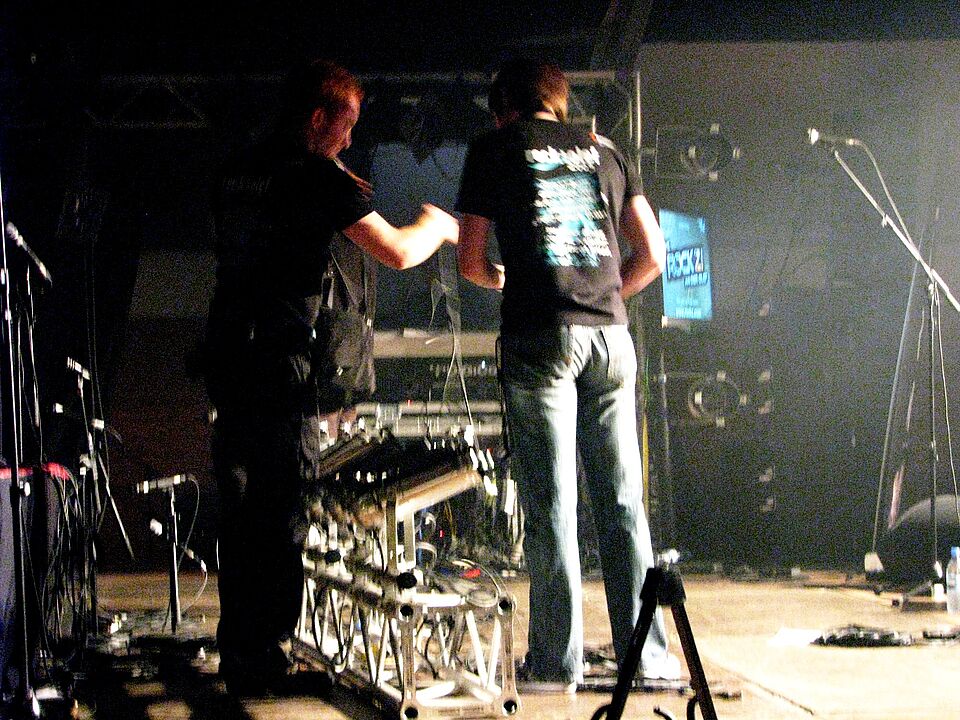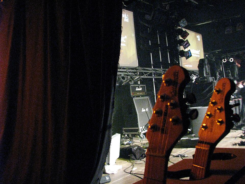 Zwischen den Auftritten wird der Backstagebereich zur reinsten Ameisenkolonie. Bandmitglieder und Helfer in schwarzen „Rock an der Olef“-Shirts packen dann Instrumente zusammen, ziehen Kisten von der Bühne, lösen Kabel und tragen alles hinaus, um dann mit den genau umgekehrten Aktionen für die nächste Band auf der Bühne aufzubauen.