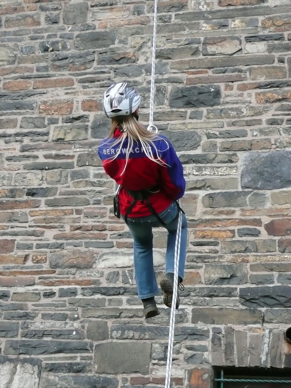 Aber auch die Höhenrettung ist ein Übungs- und Einsatzfeld der Bergwacht, beispielsweise am Turm der "Burg Vogelsang". Die Bergwachttruppe, die dort am Rande der Rotkreuz-Kreisversammlung 2008 Aufsehen erregende Übungen absolvierte, muss Sicherheit und Rettung auch am Turm der Burg gewährleisten.