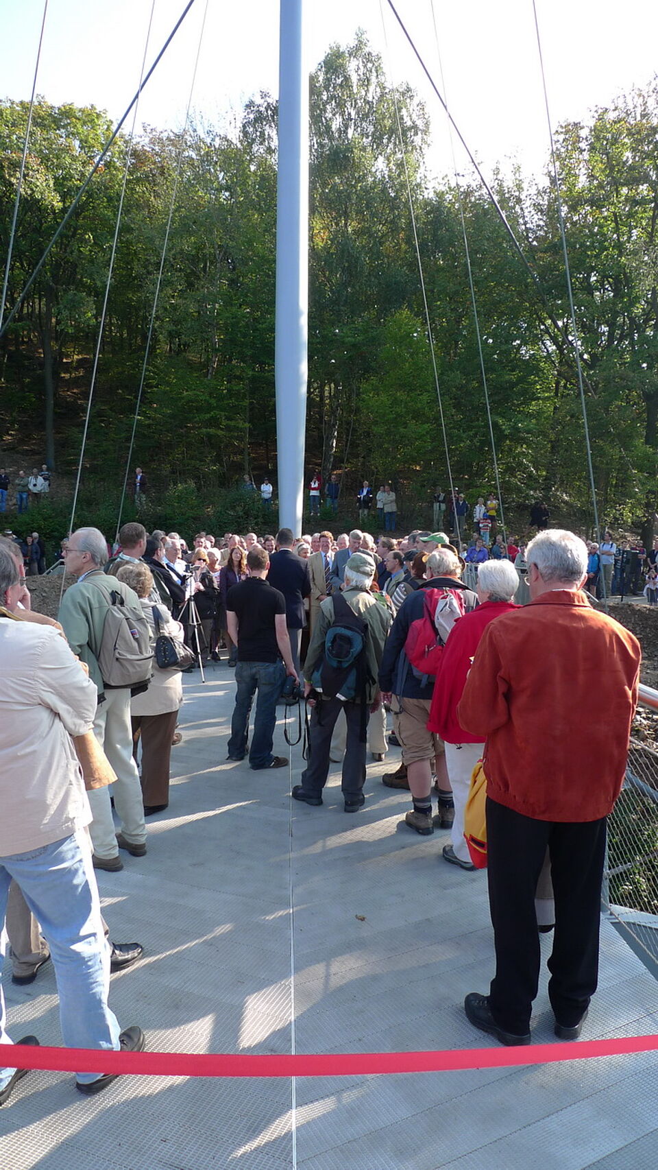 Dort wurde am Sonntagvormittag die neue Brücke über den Urftsee feierlich eröffnet. Sie verbindet die alte K7 (Kreistraße 7, entlang des Urftsees von Gemünd nach Ruhrberg) mit dem "Vogelsang-Ufer". Ein imposantes, leichtes Bauwerk, das sich hervorragend in die Landschaft einpasst.
