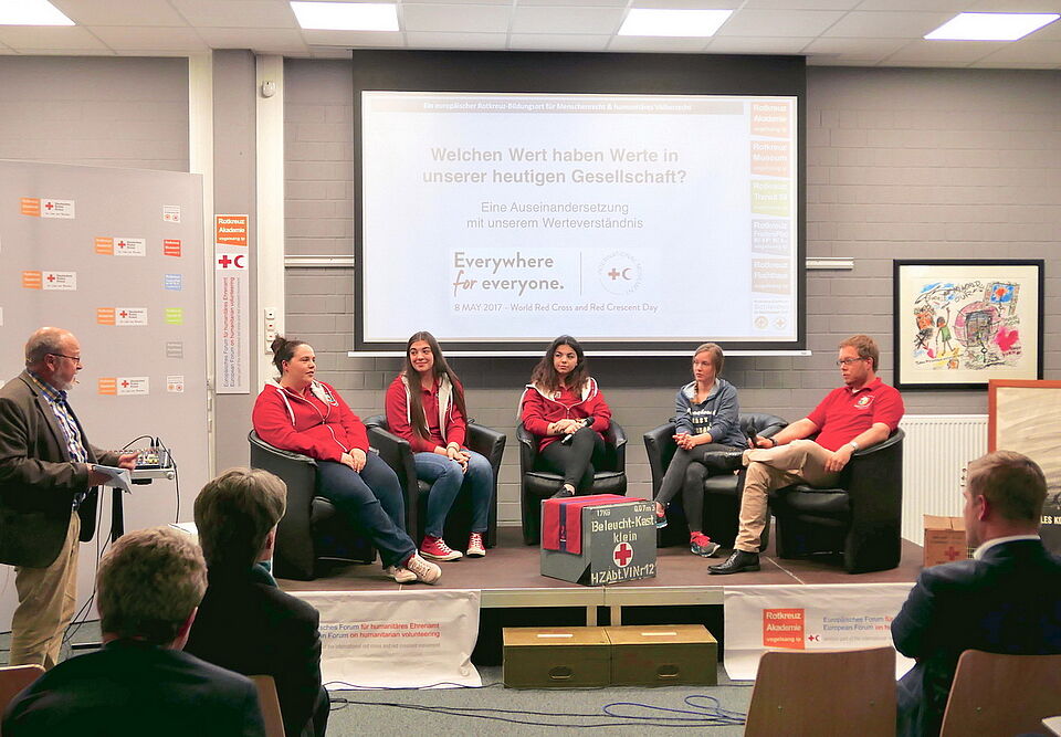 Dabei gehe es nicht nur um eherne Dinge wie die sieben Grundsätze des Roten Kreuzes, so die Diskutanten, also um Menschlichkeit, Unparteilichkeit, Neutralität, Unabhängigkeit, Freiwilligkeit, Einheit und Universalität. Es gehe um so einfache Dinge, wie nicht ständig zu „kühmen“, sondern den Dingen etwas Positives abzugewinnen.