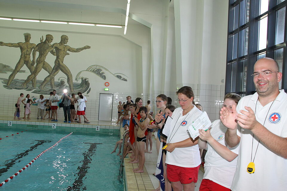 Großes Lob spendeten Landrat Rosenke und die DRK-Wasserwacht dem Schwimmverein Vogelsang, der in tausenden Stunden ehrenamtlicher Arbeit das Bad Vogelsang restauriert hatte. Ein solches Engagement in Zeiten, in denen reihenweise Bäder geschlossen werden, sei für die Entwicklung von Kindern und für den Sportunterricht an Schulen gar nicht hoch genug einzuschätzen, erklärten der Landrat und der Wasserwacht-Landesleiter übereinstimmend.