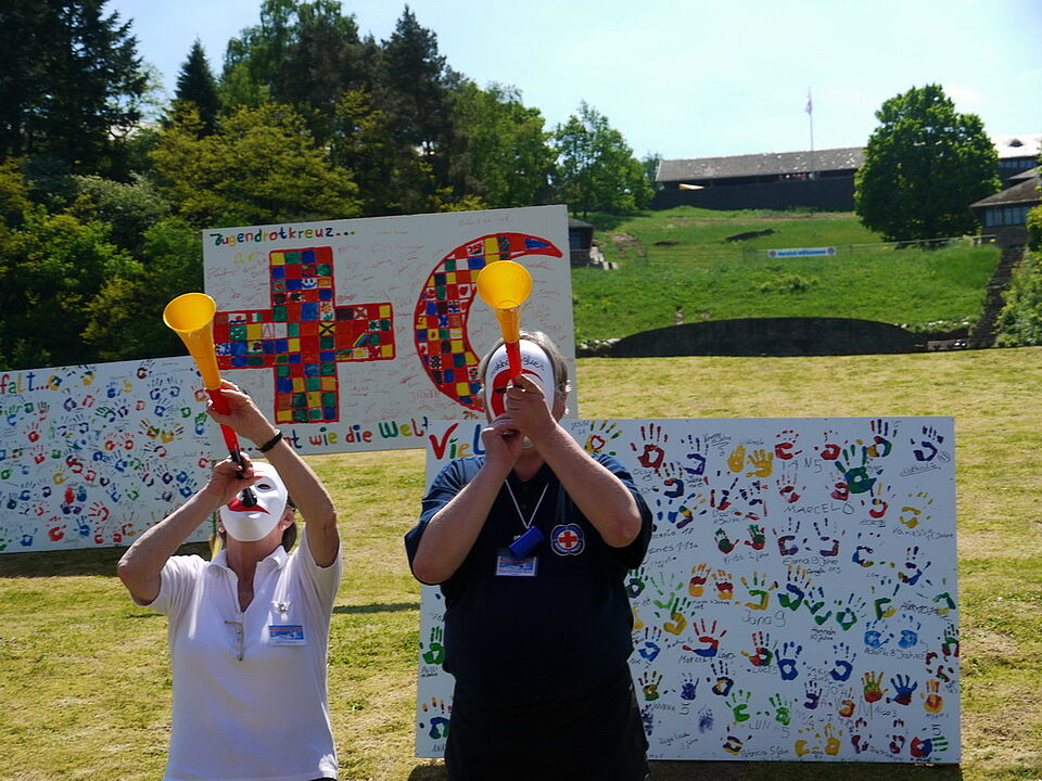 Die nahende Fußball-Weltmeisterschaft drückte dem Rettungsschwimmwettbewerb der Wasserwacht und des Jugendrotkreuzes unmissverständlich ihren Stempel auf: Im Schwimmbad von Vogelsang in der Eifel regierten die Vuvuzelas - Blasinstrument und Symbol des südafrikanischen Fußballs. So konnte es passieren, dass diesmal bei heftiger Tröten-Lautstärke den Schlachtenbummlern eher die Puste ausging als den Mannschaften. Aber die Blasinstrumente hatten auch ihr Gutes: Sie zauberten den Sound von Südafrika in die Veranstaltung, die unter (fast südafrikanischem) Sonnenhimmel von Anfang bis zum Schluss ein Gute-Laune-Tag auf dem riesigen Burggelände hoch über Urfttalsperre und Rursee wurde.