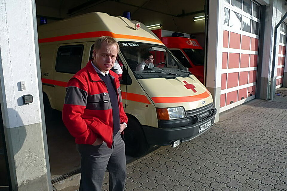 Bild DRK SN | Thomas Heinen, einer der Verantwortlichen des Rotkreuz - Kreisverbandes, wartet auf die nächsten Fahrzeuge