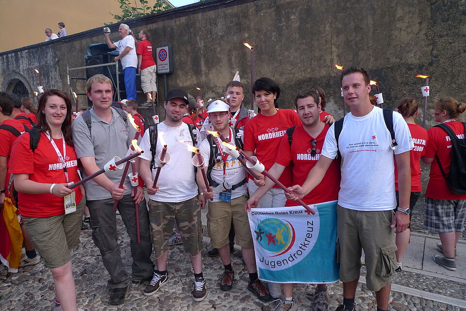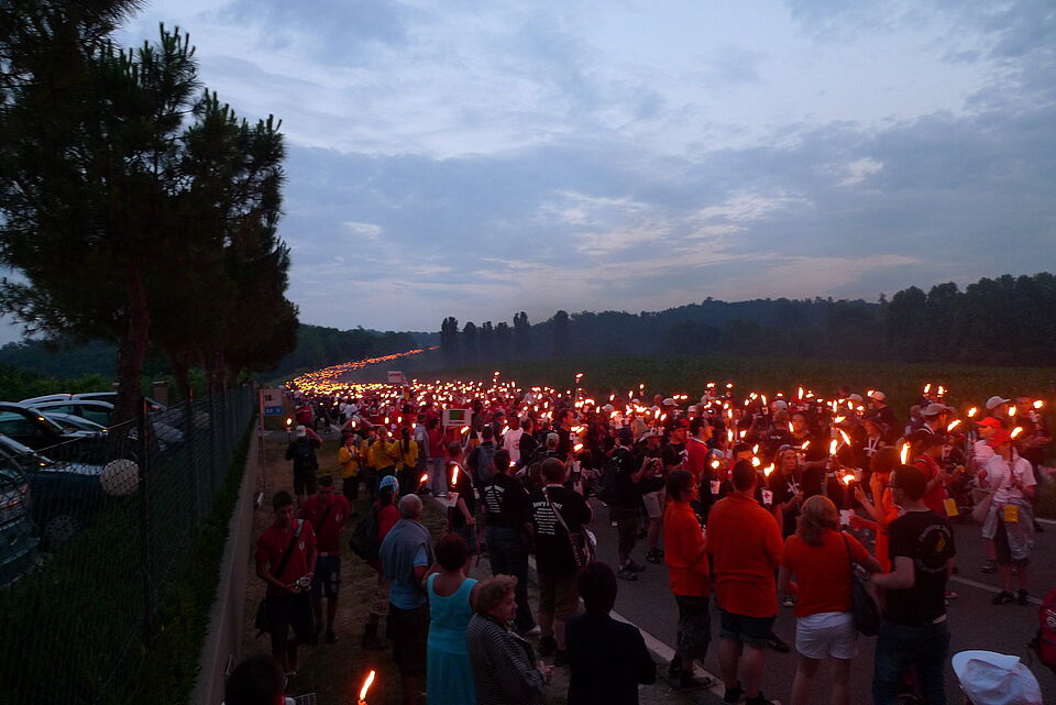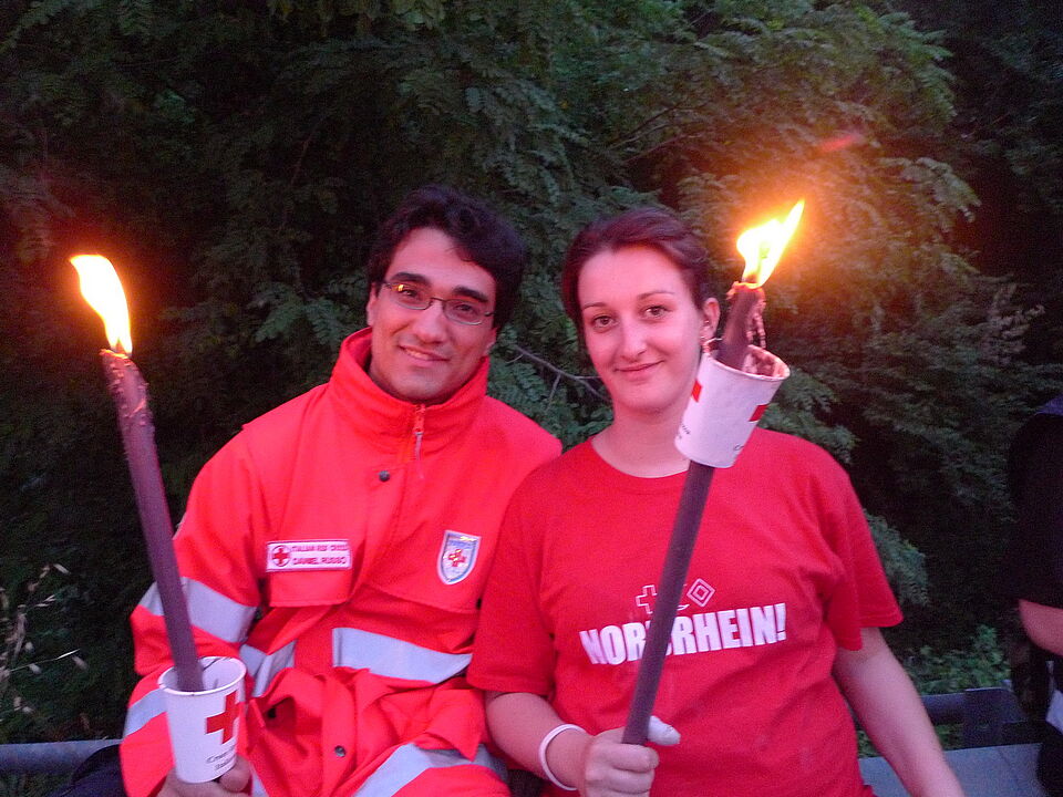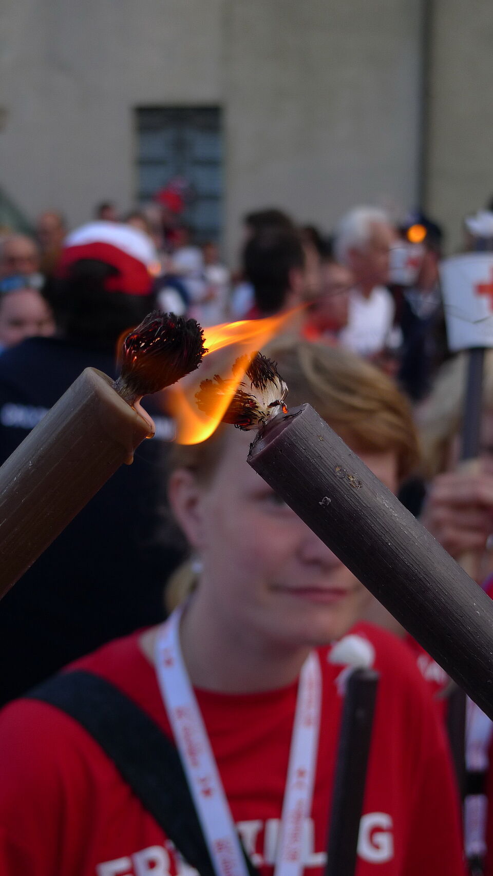 Nach dem Besuch der Knochenkapelle Ossario di Solferino und des Rotkreuz-Denkmals stand am Samstagabend der Höhepunkt der Reise an, die Fiaccolata, ein Fackelzug rund um Solferino. Nach einer Veranstaltung mit vielen Teilnehmern wurden die Fackeln entzündet und der über sieben Kilometer lange Zug setzte sich in Bewegung. Die Stimmung war klasse, man lernte viele Leute aus aller Herren Länder kennen. Wenn man sich umschaute, sah man ein Meer von Menschen mit Fackeln. „Das war Gänsehautfeeling pur. Hier kann man die Rotkreuzidee hautnah erleben“ meint Christoph Thomaßen, Sachbearbeiter beim Roten Kreuz in Euskirchen.