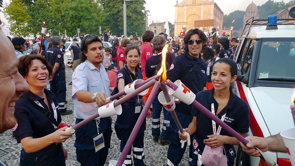 Euskirchener Rotkreuzler nahmen an der „Fiacollata 2010“, einem atmosphärisch dichten Fackelzug über jenes Schlachtfeld in Italien teil, auf dem Henry Dunant seine Inspiration zur Gründung des Roten Kreuzes erhielt – Die Frauen von Castiglione pflegten Soldaten beider Seiten und benannten das Wesentliche: „Tutti fratelli“ („Wir sind alle Brüder“) – Euskirchener Rotkreuz-Kreisgeschäftsführer Rolf Zimmermann und Begleiter besuchten in Genf die Hauptquartiere der beiden großen internationalen Rotkreuz-Organisationen IFRC (Föderation der Rotkreuz- und Roter Halbmond-Gesellschaften) und IKRK (Internationales Komitee vom Roten Kreuz)