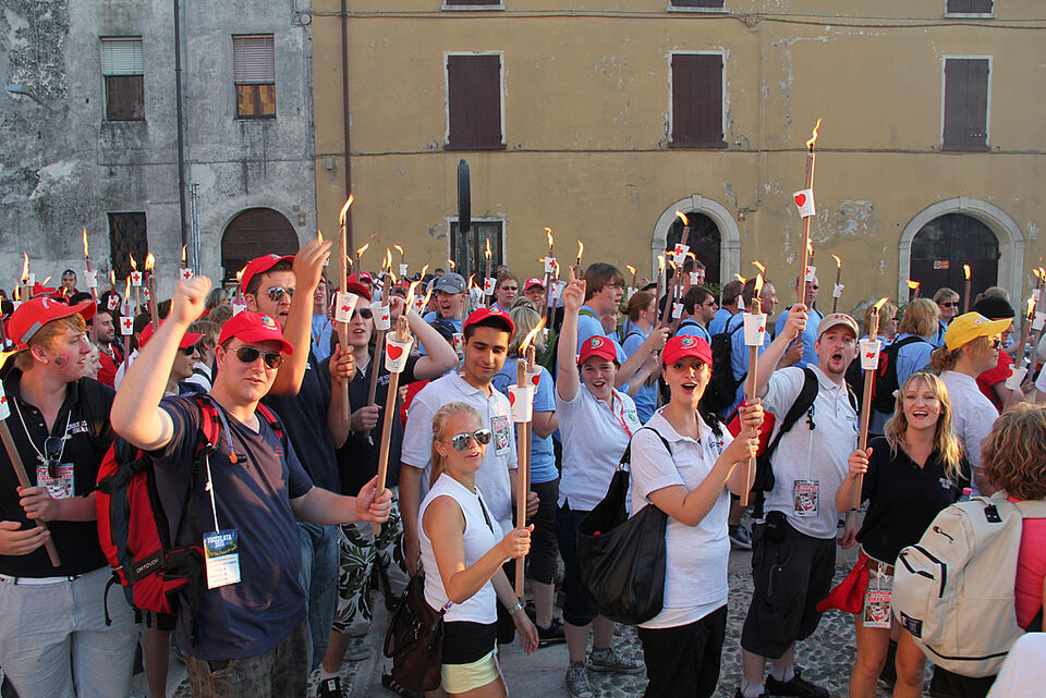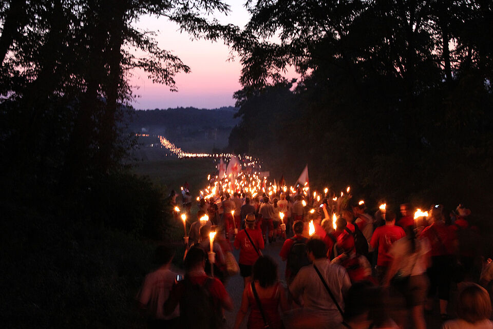 Gemeinsam mit allen zieht man durch die engen Strassen, die nur von den Fackeln hell erleuchtet werden. An den Rändern stehen die Bewohner, jubeln den jungen Menschen aus der ganzen Welt zu. Ein unglaubliches Gefühl ,und die Kilometer vergehen wie im Flug.