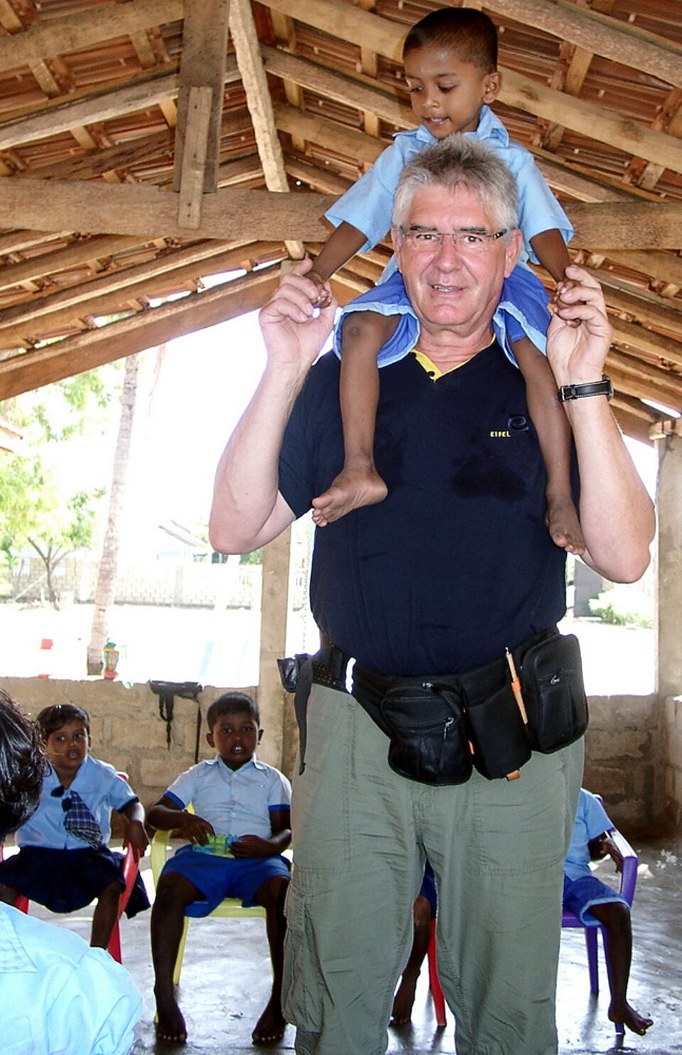 Zwar zählen diese Einsätze zur alljährlichen Tsunami-Nachsorge, doch galt es in diesem Jahr, nach einem Hochwasser im Frühjahr erneut zahlreiche Schäden zu beseitigen. Dabei fuhren Dederichs und Schwarzer insgesamt zwölf Kindergärten an, die seit der verheerenden Flutwelle von Eifel-Aid wieder aufgebaut wurden und bis heute betreut werden. Gemeinsam mit den Helfern vor Ort wurden Toiletten und Spielgeräte repariert, Dächer gedeckt und Brunnen gesäubert. Im Gepäck hatten die Helfer aus dem Kreis Euskirchen nicht nur Hefte und Stifte, sondern auch Süßigkeiten. „Die Kinder im Dschungel hatten anfangs Angst vor uns, weil wir so groß sind und sie noch nie zuvor einen Weißen gesehen hatten“, berichtete Winfried Dederichs. Doch die Scheu währte nicht lange, und bald wurde der Chef der Nettersheimer Feuerwehr nur noch „Willi-Uncle“ gerufen. In der Regel seien es Kinder aus sehr armen Familien, die die Kindergärten besuchten.