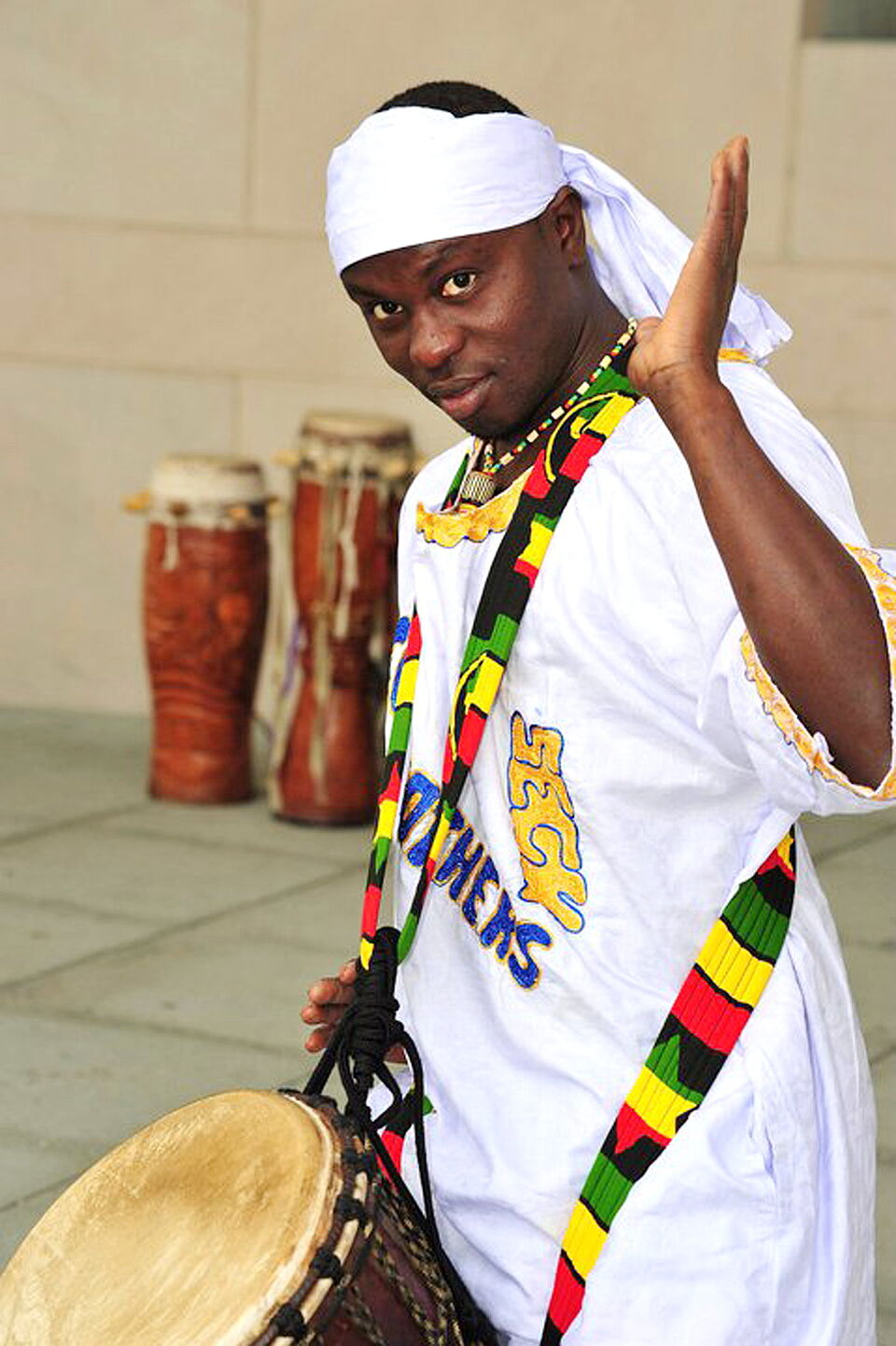 Er ist mit einer Vielzahl traditioneller Instrumente wie beispielsweise Djembé, Sabar und Tama aufgewachsen und beherrscht diese virtuos. Das konnten kürzlich auch die Teilnehmer eines Trommel-Workshops beim Roten Kreuz erfahren.
