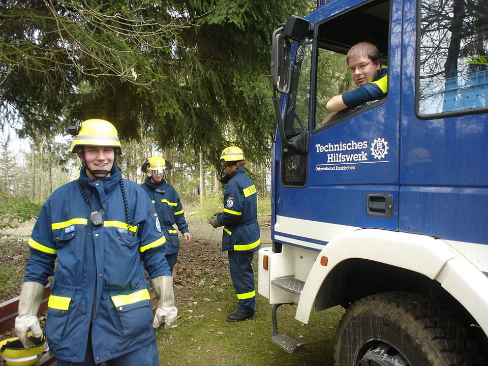 Eine Gruppe des Euskirchener Technischen Hilfswerks mit ihrem Zugführer Burkhard Aehlich und Helfer der Rotkreuz - Bergwacht errichteten die ersten Stationen.