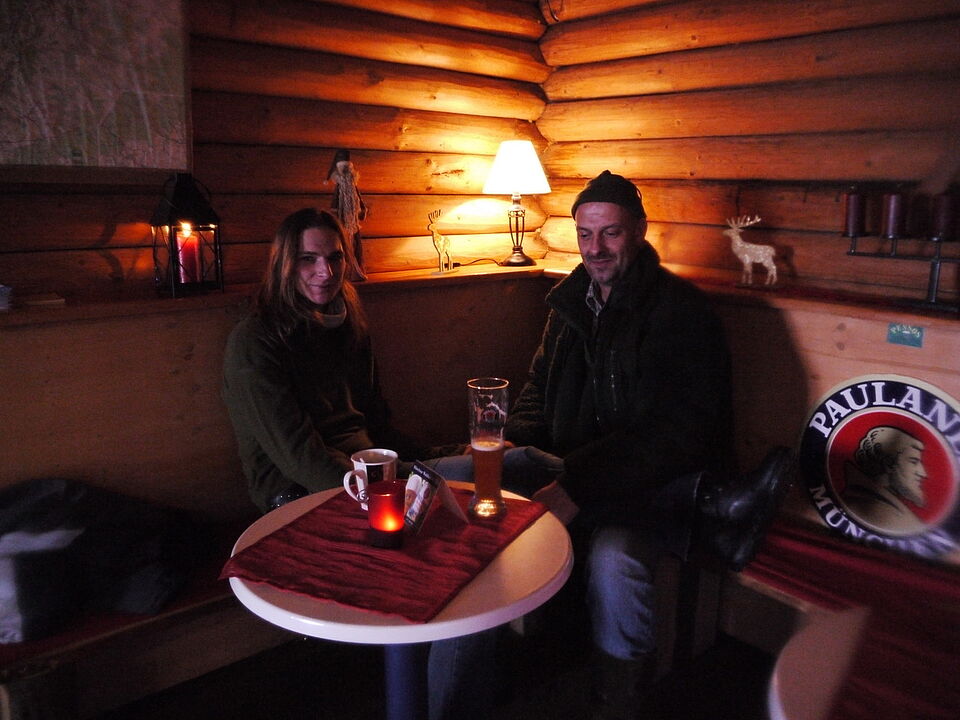 Auch die Jausenstation ist schon fertig eingerichtet. Hier können sich die Gäste nach ihrem Schneevergnügen bei heißen Getränken und einer kleinen Mahlzeit aufwärmen.
