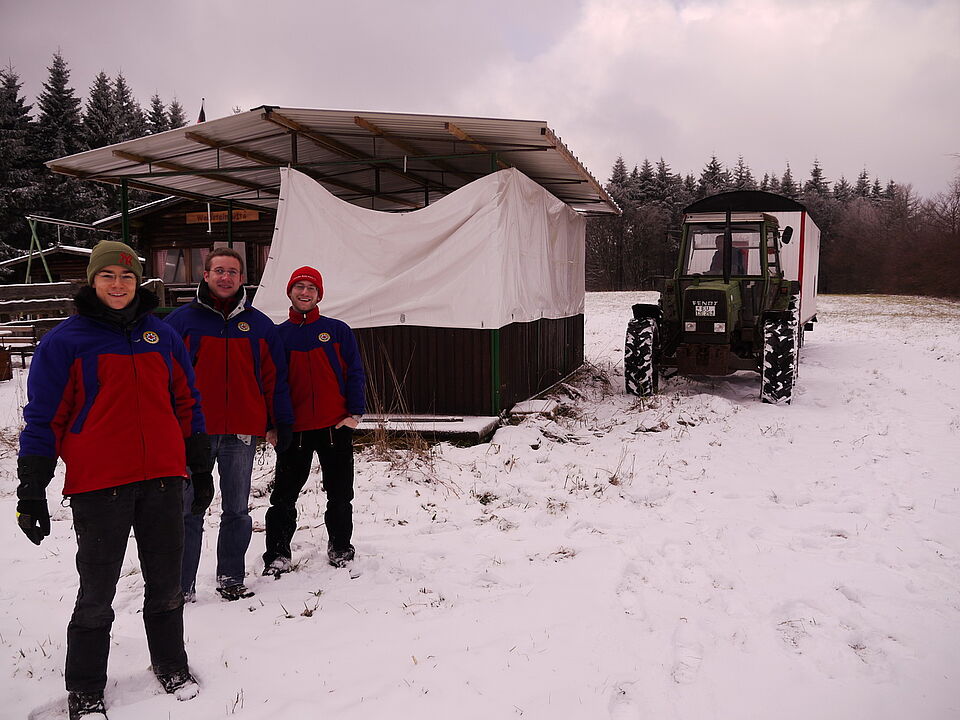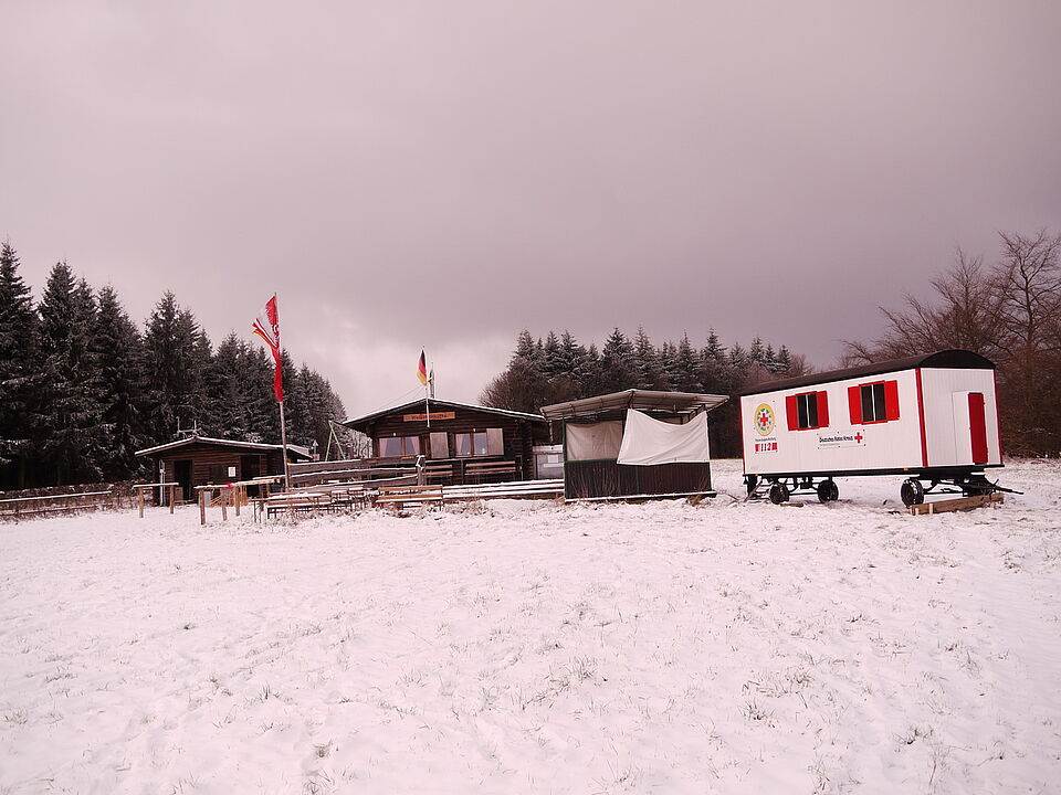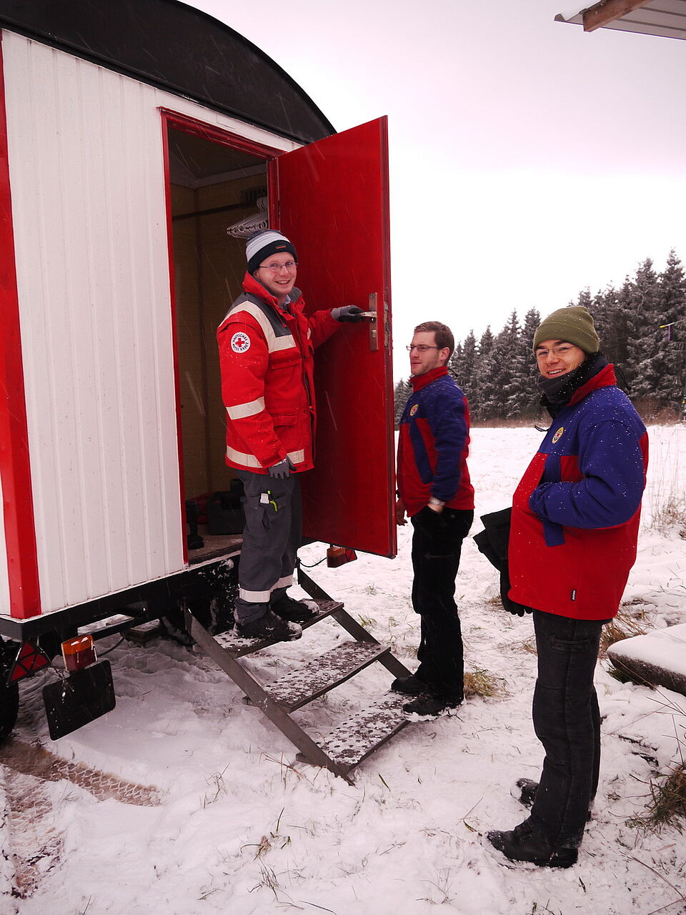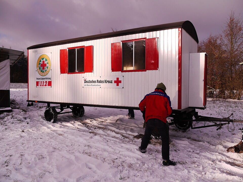 Für dieses Wochenende hatten die Rotkreuz-Bergwachtler die Einrichtung ihrer Wachstation in Udenbreth geplant und prompt kam der Schnee.