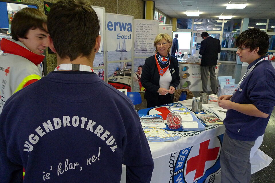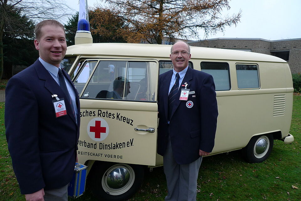 Gastgebende Gemeinschaft war in diesem Jahr die Bereitschaft Voerde, die ihr 100-jähriges Bestehen feierte. Aus diesem Anlass war eine interessante Ausstellung zum Thema "DRK gestern und heute" vor der Versammlungsstätte im Schulzentrum aufgebaut.