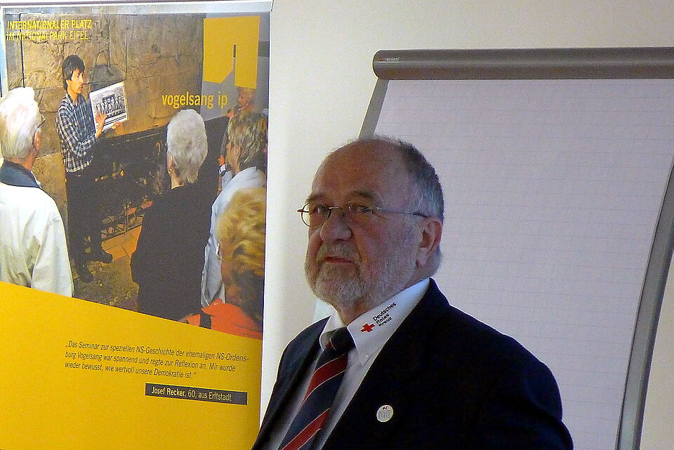 Das Internationale Rotkreuz-Museum vogelsang ip für internationales Völker- und Menschenrecht wäre eigentlich noch gar nicht dran gewesen als Tagungsort, so Rolf Zimmermann. Aber weil das eigentliche Gastgeber-Museum ausgefallen war, durfte man die Arbeitsgemeinschaft schon 2013 im erst 2011 im früheren Kameradschaftshaus 10 der NS-Ordensburg Vogelsang eröffneten Museum begrüßen.