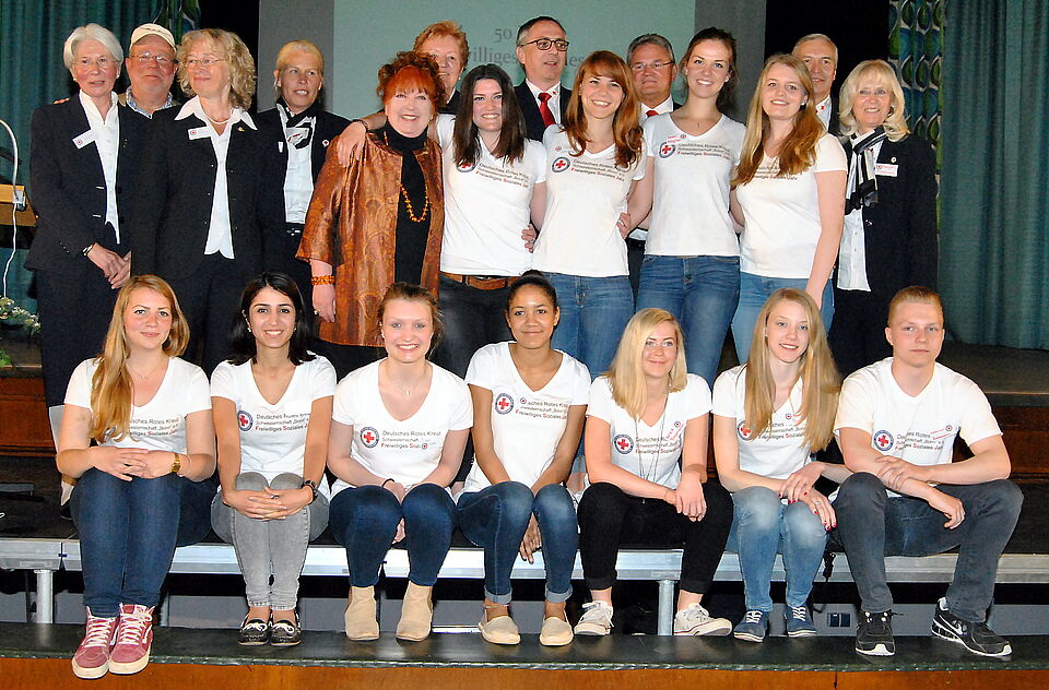 Diese waren gleich busweise an den Platz gekommen, den alle Beteiligten als idealen Veranstaltungsort lobten. Rund 400 Teilnehmer, darunter 200 FSJler und 60 Altenpflegeschüler, zahlreiche Vertreter der kooperierenden Einrichtungen sowie Repräsentanten aus Politik, Kirche und Gesellschaft waren der Einladung gefolgt. Begrüßt wurden sie von Oberin Lioba Brockamp, der Vorstandsvorsitzenden der Bonner Schwesternschaft. Sie betonte, dass die Grundsätze des Roten Kreuzes nicht nur das berufliche Handeln der Schwesternschaft prägen, sondern das gemeinsame Leben. Dazu zählte sie die Nächstenliebe, die Mitmenschlichkeit, die Aufgeschlossenheit für die Probleme anderer und die Freiwilligkeit. „Die Freiwilligen tragen dazu bei, dass die Gesellschaft heute nicht zu sozialen Autisten verkümmert“, sagte die Oberin.