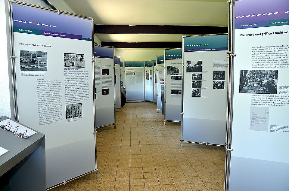 Fürs erste Jahr integraler Bestandteil ist die Sonderausstellung „Umweg Prag - Die Prager Botschaftsflüchtlinge im Herbst ´89 in der Bundesdeutschen Botschaft in Prag“ des Deutsch-Deutschen Museums Mödlareuth. Sie erzählt unter prominenter Beteiligung des Roten Kreuzes im Kreis Euskirchen die Geschichte vom Anfang des Endes der deutschen Teilung und des Eisernen Vorhangs in Europa.