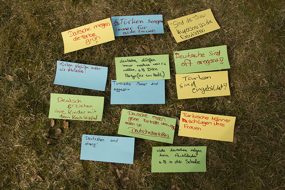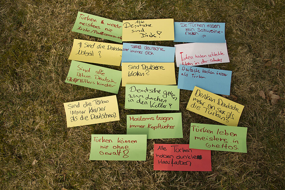 Am Sonntag startete das Programm mit vielen Vorurteilen. Gemeinsam wurden diese besprochen und gut die Hälfte aller genannten Vorurteile stellten sich als Falsch heraus. Im Anschluss wurde noch eine gemeinsame Collage über die Unterschiede, vor allem aber die Gemeinsamkeiten erstellt.