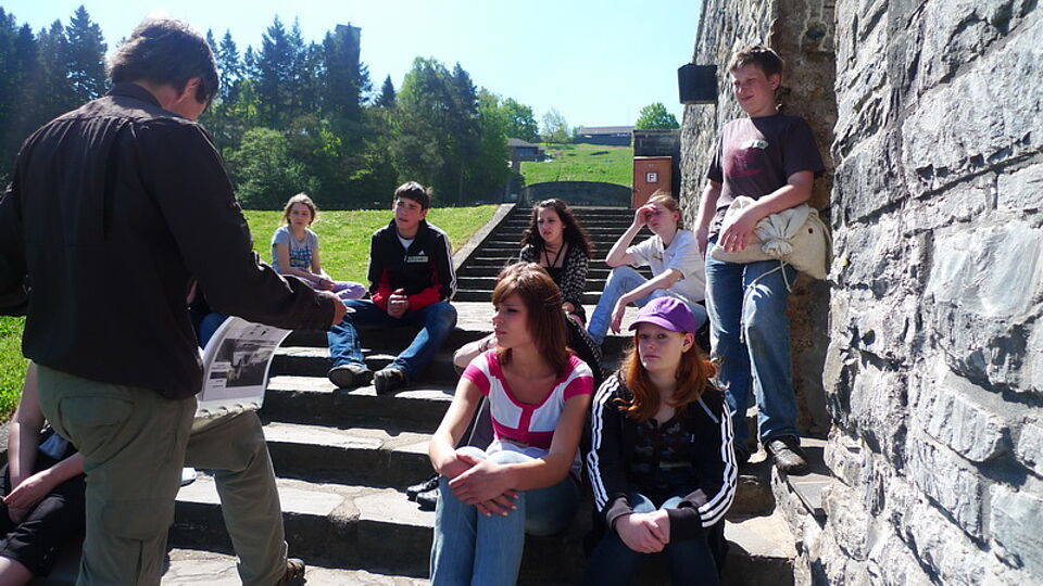 Der dritte Tag und das Wetter war immer noch super. Also schnell raus zum Frühstück und gucken, was uns heute erwartet. Gestärkt marschierten wir zum Adlerhof, wo uns die Referenten von „vogelsang ip“ empfingen. Aufgeteilt in zwei Gruppen erfuhren wir dann allerlei über den Ort Vogelsang. Wir besichtigten verborgene Räume, erklommen den Turm und lernten eine ganze Menge über die Geschichte.