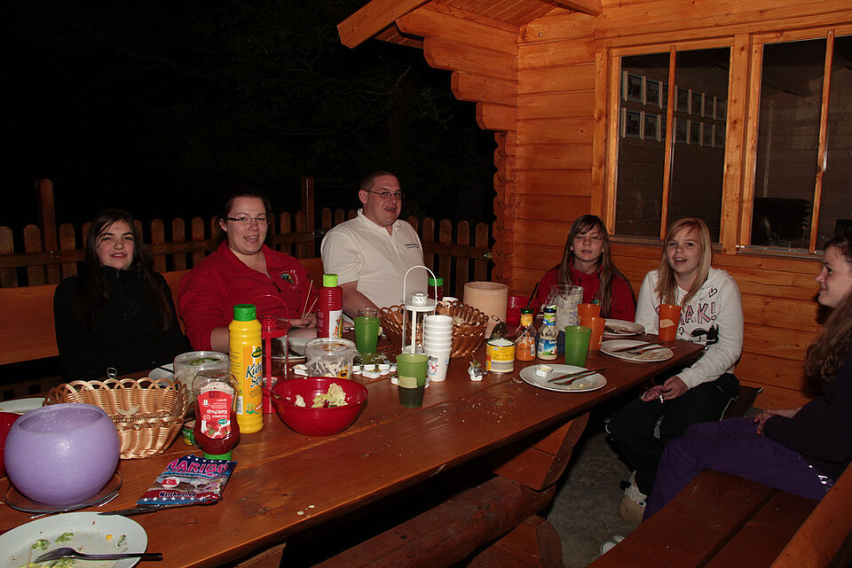 Bild DRK ZL| Nach so viel Arbeit hatten alle einen riesen Hunger und so setzte man sich in gemütlicher Runde zum Grillen vor die Talstation - auch die Rettungsdienst Besatzung vor Ort durfte ausnahmsweise an diesem besonderen Abend teilhaben.