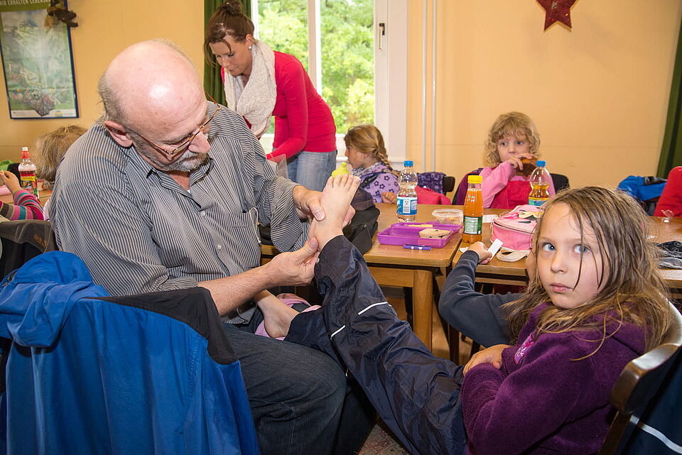 In den Rotkreuz-Baracken in Vogelsang galt es für die Großväter und Enkel erst einmal, sich nach der langen Wanderung mit einem Frühstück zu stärken. Anschließend bastelten sie gemeinsam Bilderrahmen, in die später die Bilder von der Wanderung eingefügt werden sollen. „Man muss immer Dinge suchen, die sowohl die Großväter als auch die Enkel ansprechen“, sagte Bodo Froebus. „Das ist das Entscheidende.“ Denn ohne eine gemeinsame Grundlage wäre das Projekt nicht zu realisieren.