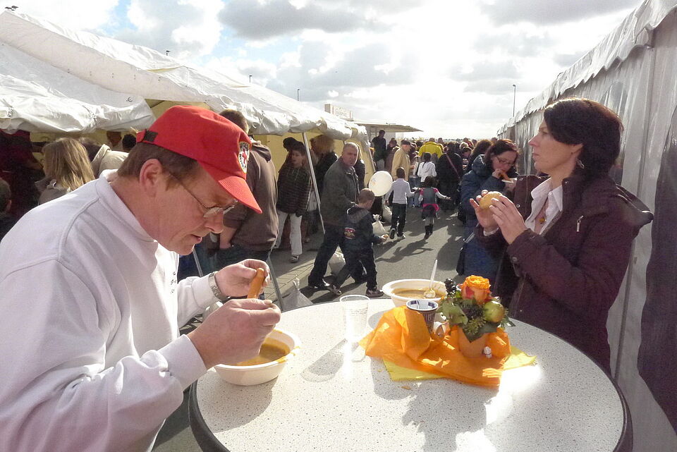 Bild DRK ZR | Gute Laune, traumhaftes Herbstwetter und viel Besuch - da schmeckt es Rotkreuz Kreisschirrmeister Herbert Schmitz besonders gut.