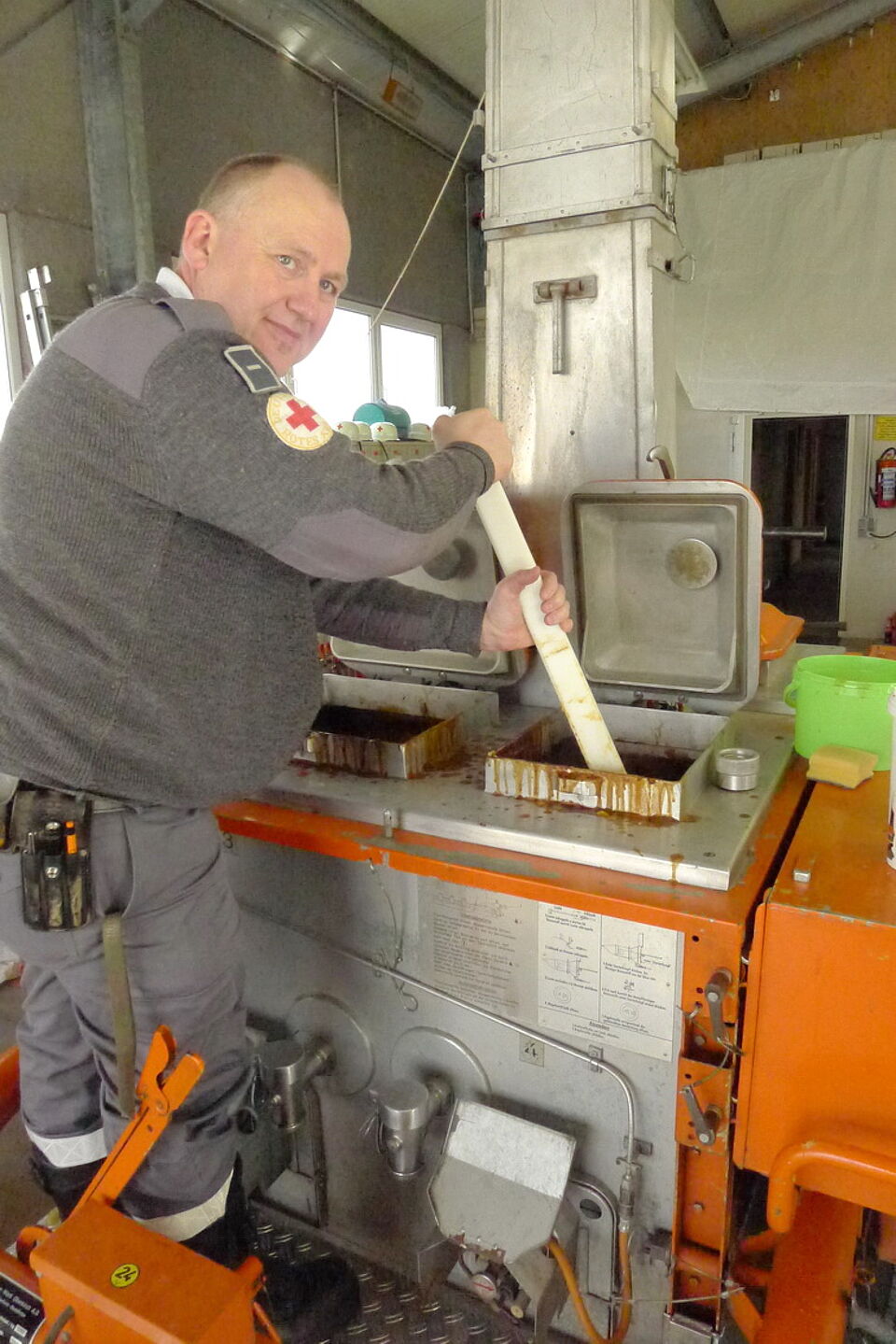Bild DRK ZR | Dirk war für das Vorkochen zuständig und sein Weilerswister Namensvetter für die Ausgabe bei dm. Die Feldköche des Roten Kreuzes werden regelmäßig geschult denn im Einsatz müssen sie schnell ein leckeres warmes Mahl für betroffene Personen und für die Einsatzkräfte zubereiten. Da kommt so ein Übungseinsatz immer wieder gut.
