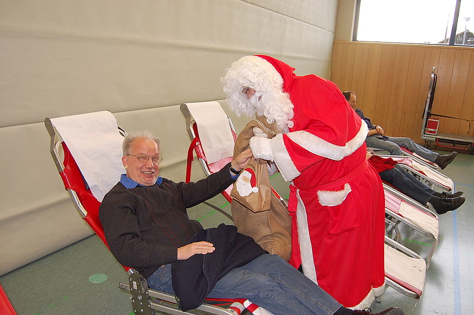 Die Füllung stellte das Rote Kreuz. Blutspendebeauftragter Günter Rose sagte dazu: "Wir wollen den Blutspendern am Ende des Jahres einfach nochmal Danke sagen." Der Nikolaus, der an diesem Tag noch viel zu erledigen hatte, beschenkte jeden Spender mit einer kleinen Überraschung aus seinem Nikolaussack.