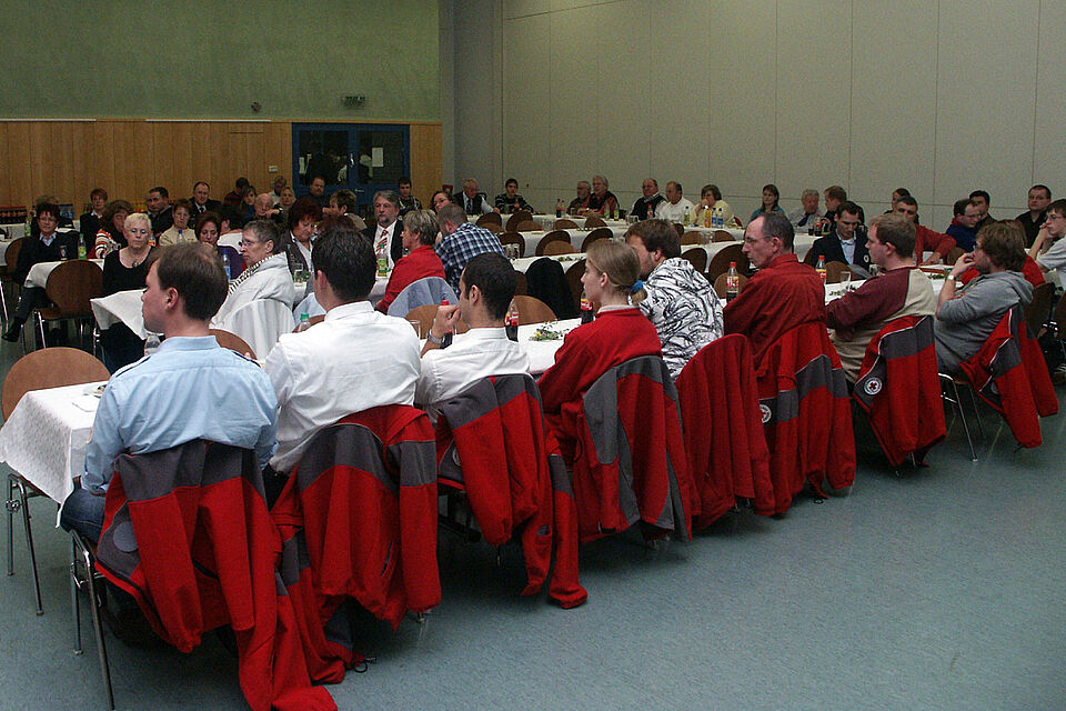 Dann aber hatte der Vorsitzende des DRK-Kreisverbandes, Erwin Doppelfeld, das Wort, um den Jahresbericht vorzustellen. Hier nur einige Punkte: Mit zwei dritten Plätzen war die Herren- und Damenmannschaft der Rotkreuz-Wasserwacht aus Dahlem beim Bundeswettbewerb in Jena erfolgreich. Die Hundestaffel aus Kall wurde im März nach dem Einsturz des historischen Stadtarchivs in Köln eingesetzt. Ebenfalls im März fanden die Hunde einen vermissten Jäger im tief verschneiten Wald bei Udenbreth. Das DRK war aber auch dabei, als am Euskirchener Bahnhof eine Bombe gefunden wurde, an der Steinbachtalsperre Chlorgas austrat, im Kreishaus Euskirchen eine Großübung absolviert wurde mit 180 Einsatzkräften, von denen allein 130 Rotkreuzler waren. Doppelfeld vergaß auch nicht, den Blutspende-Marathon in der Zikkurat zu erwähnen, die Übernahme des Transitgebäudes in Vogelsang durch das DRK, eine Tagesfahrt mit 530 Senioren und einen Großeinsatz in Dom Esch.