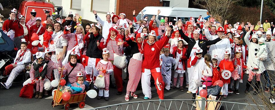 Dank der großzügigen Unterstützung seitens zahlreicher ortsansässiger Firmen konnten die großen und kleinen Rotkreuzler aus dem Vollen schöpfen und jede Menge Kamelle und anderes Wurfmaterial unters Volk bringen.