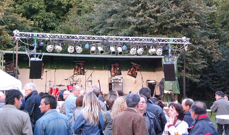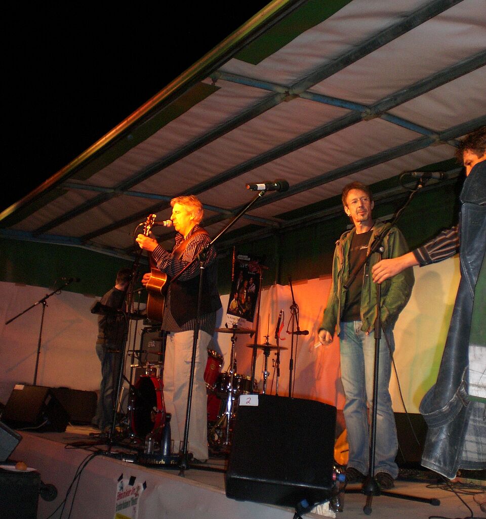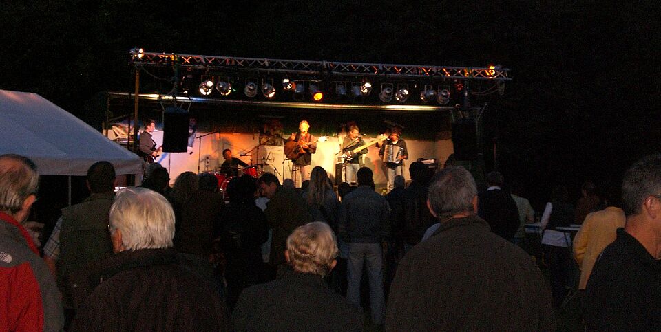 Die Eifeler Band "Wibbelstetz" mit ihrem Frontmann Günter Hochgürtel präsentierte den gut 250 Besuchern ein Gastspiel, das seines Gleichen sucht. Auf dem am Waldrand gelegenen Veranstaltungsort genossen die Besucher die tolle Akustik und einen hervorragenden Blick über Weilerswist.